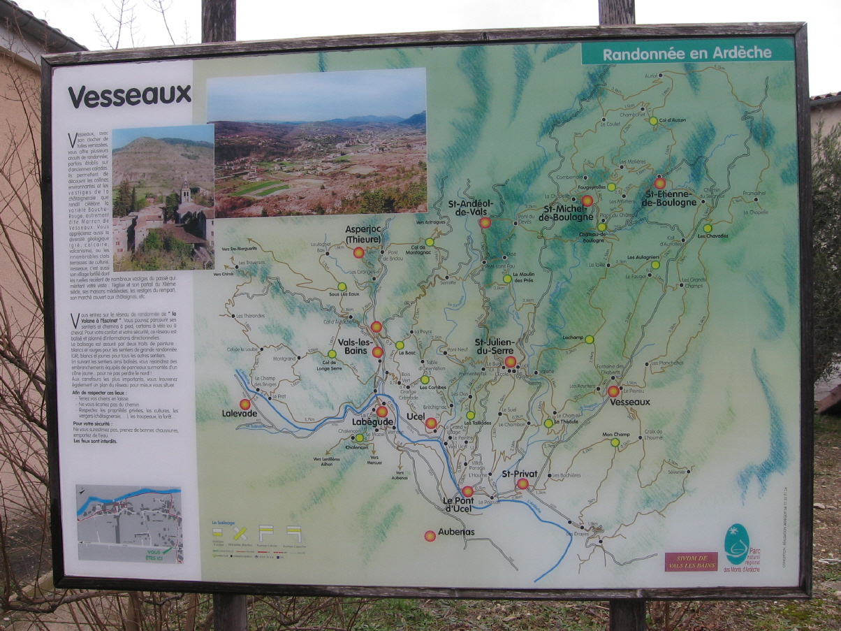 Le vieux village de Vesseaux se trouve au coeur du fort.L'église date de 1135, le village est sur l'axe principal Aubenas - Privas